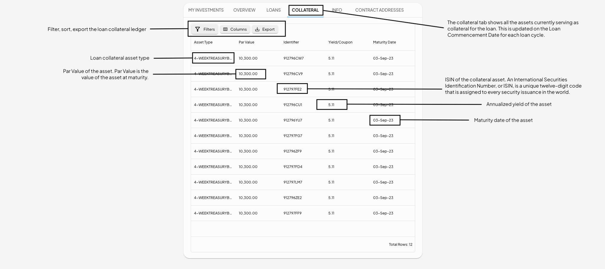 View a detailed list of the loan collateral backing each loan.