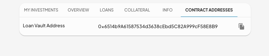 View the Ethereum smart-contract address for the Loan Vault