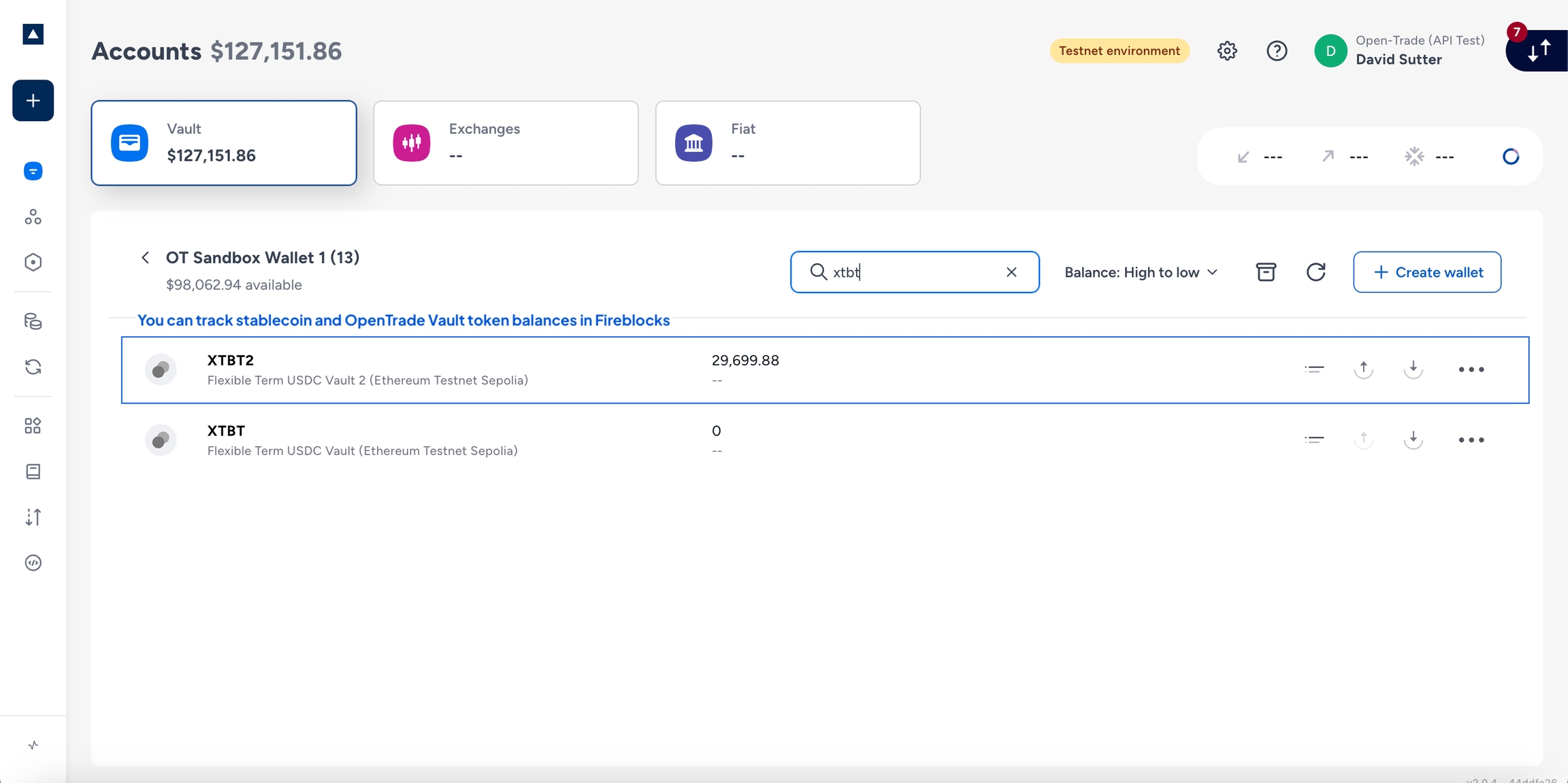 If you'd like to track OpenTrade Vault Token balances in Fireblocks, you can easily list the vault token in your workspace. A guide for how to do this can be found here.