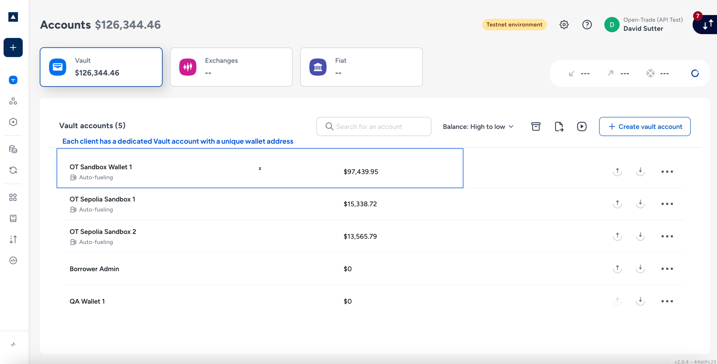 Fireblocks Vault Accounts are a collection of wallets. You may already have one configured. At a minimum, each vault account needs a wallet for